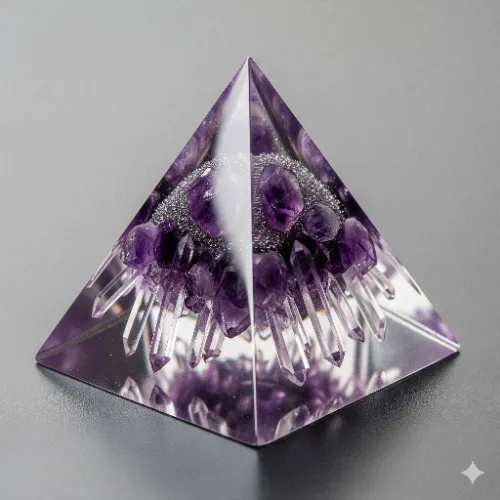 The Amethyst Resin Pyramid is a powerful spiritual tool that radiates calming and protective vibrations. Known as the Stone of Spirituality, Amethyst enhances intuition, relieves stress, and helps balance emotions. Its pyramid shape amplifies energy, making it perfect for meditation, healing, and home protection.