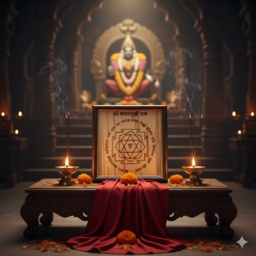 Chant Maa Baglamukhi Mantra (108 times) daily for energizing the yantra.
