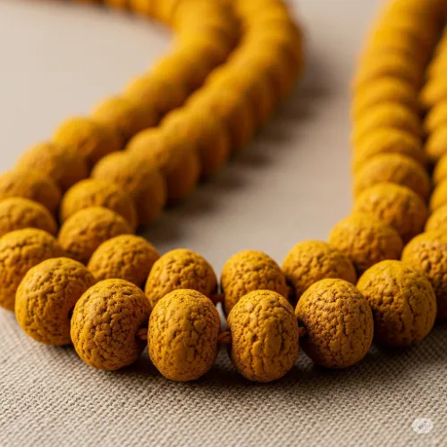 Handcrafted and genuine, preserving the natural energy of turmeric beads.