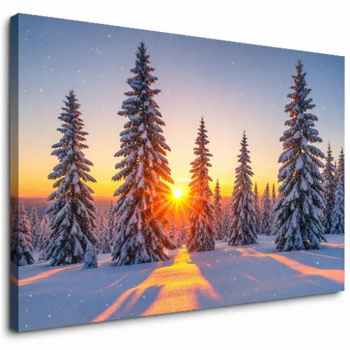 Snow Trees with Winter and Beautiful Sunrise Canvas Wall Painting – Serenity, Calm & Positive Energy
